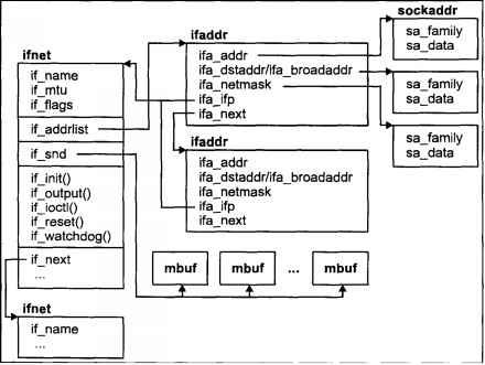 Эта информация представлена соответствующими структурами данных, называемыми TCB (Transmission Control Block). Как правило, коммуникационный узел, представляющий сетевой интерфейс для взаимодействующих процессов, хранит указатель на эти управляющие данные. Более подробно архитектура сетевых интерфейсов UNIX описана в следующих разделах.