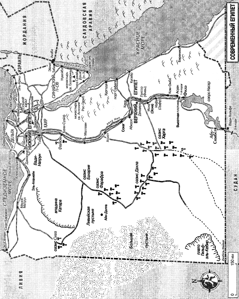 Египет, площадь которого в два раза больше территории Франции и в три раза меньше территории Соединенных Штатов, представляет собой по большей части бесплодную пустынную страну, в которой могут жить лишь обитатели немногочисленных оазисов и кочевники-бедуины. Поскольку