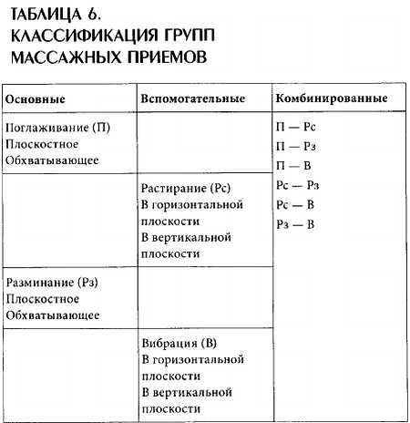 Таблица 4. КЛАССИФИКАЦИЯ ВИДОВ МАССАЖА