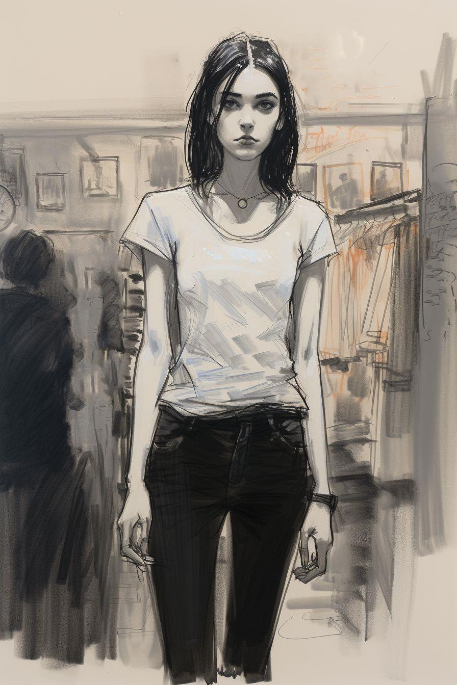 Платье ей действительно совершенно не идёт. Что-то невзрачно-серое, на пару размеров шире, чем надо бы. В нём она выглядит даже более худой, чем на самом деле.