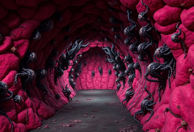 Сначала это была просто тень, масса тьмы и святящихся прожилок. Потом она обрела форму. Не форму существа, а форму отсутствия формы. Это был живой парадокс, воплощённый разрыв реальности. У него были очертания, напоминающие одновременно многоногого паука, змею и гуманоида, но они постоянно менялись, текли, распадались и собирались вновь. Вместо головы — вращающаяся сфера из абсолютной тьмы, усеянная мириадами крошечных, мерцающих точек-глаз. И от него исходила тишина. Не отсутствие звука, а пожирание звука, света, мысли. Пространство вокруг него гнулось, рвалось и умирало.